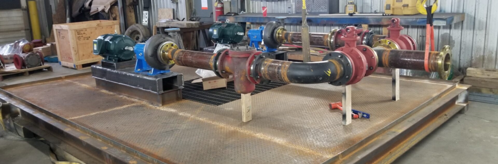 Here at Integrity Pump Service we have a full Fab Shop with the ability to Fabricate Skids with or without a building up to 19 1/2″ Wide and 100′ Long, we work with Certified Welders to Weld any Structural or Piping needs. We can start from scratch by drafting anything you require or fabricate from your drawings. We have a QC program that will ensure your project is done right, to code, and to your specifications. We stand by our work and our quote to ensure the customer has no surprises OR headaches throughout the entirety of the project. Give us a chance to quote on any of your large or small projects!!